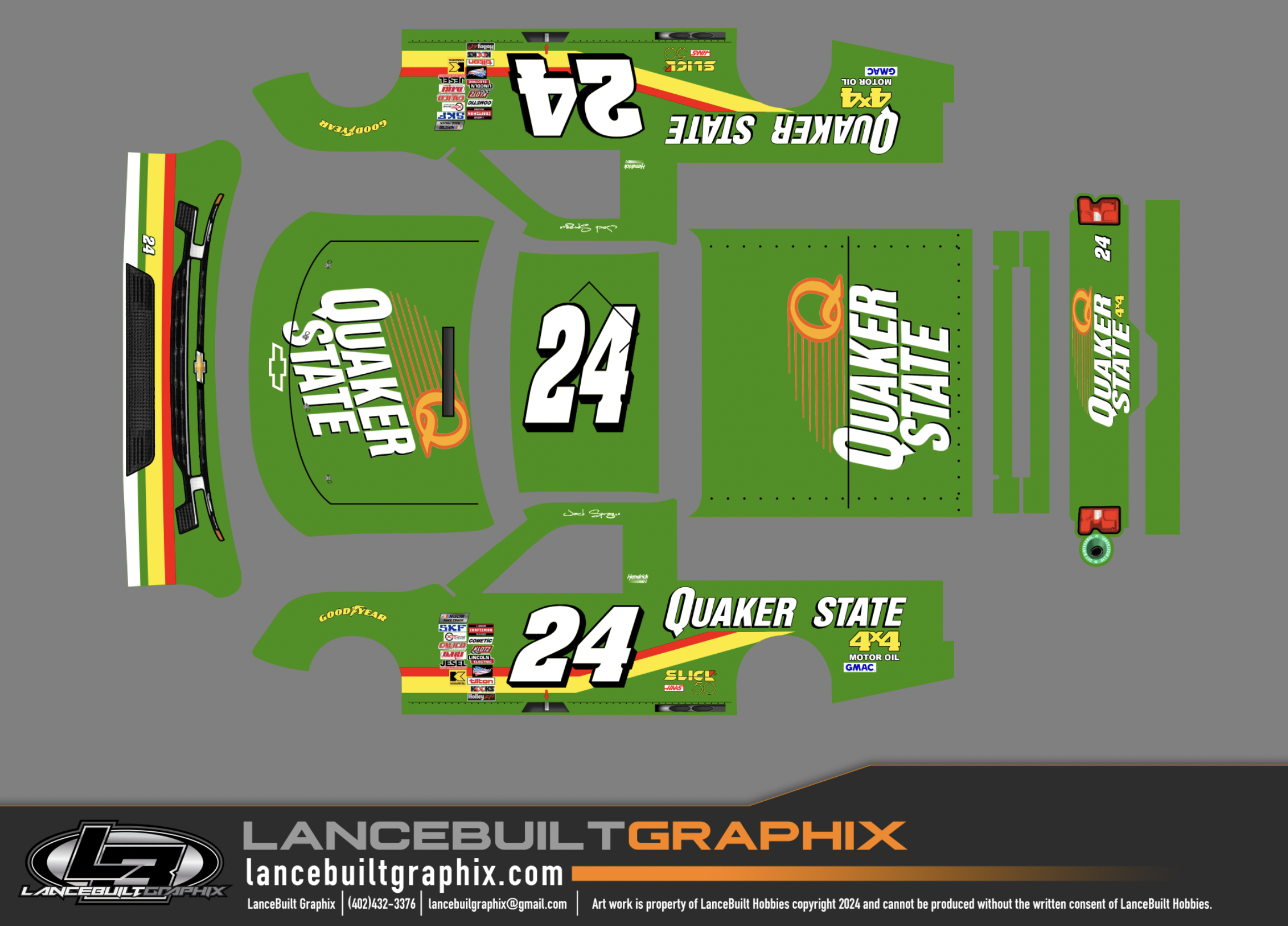 Rep your favorite driver! These wraps are specifically designed for the 1/12 Losi Nascar. They can be applied on a clear body or over the existing body with complete coverage. They are all laminated in a clear gloss that will protect the design and look great!