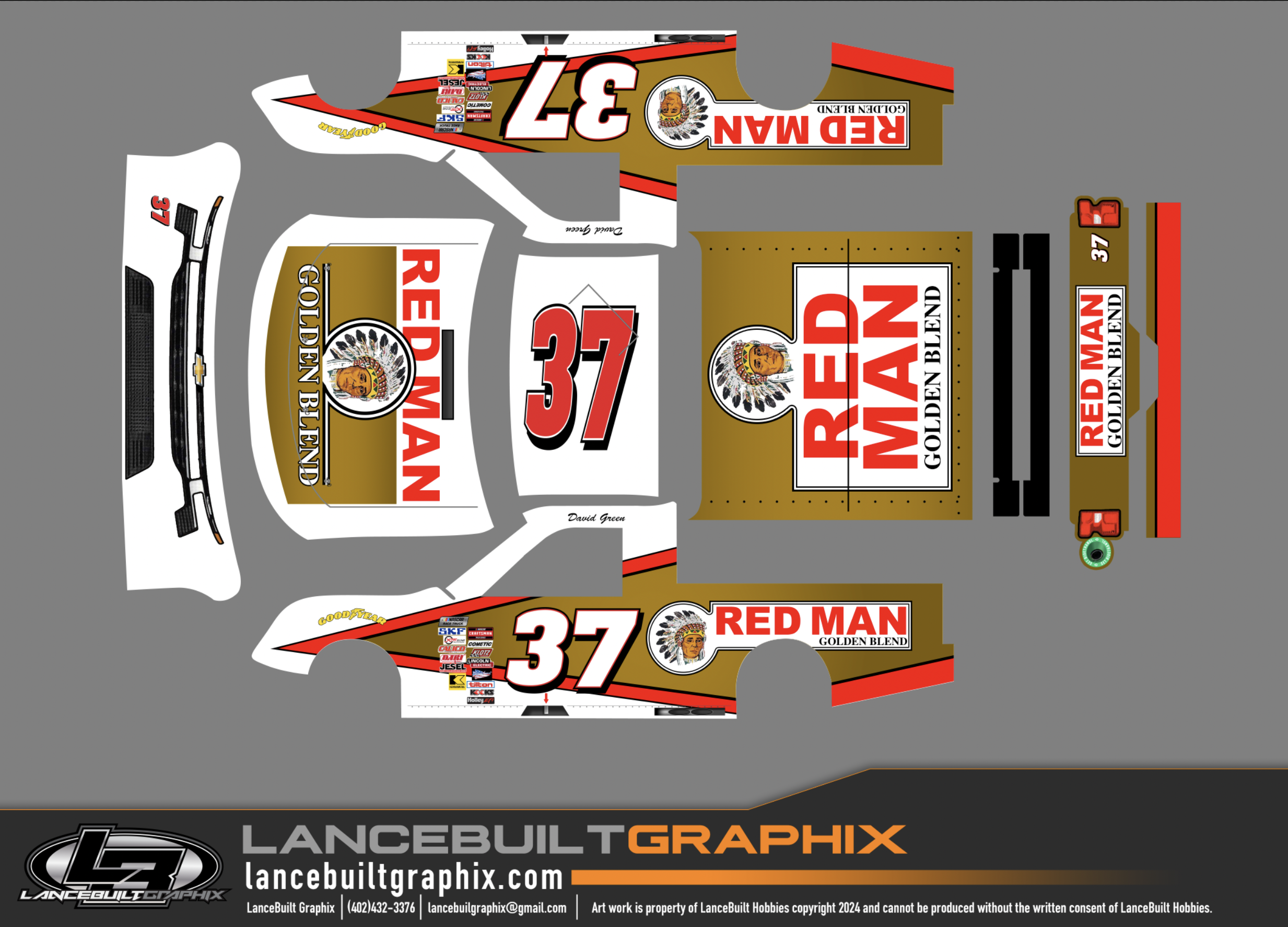 Choose your design from the drop down menu and which of the three body styles you have, you can also customize the drivers name and car number by adding a note at checkout or after its ordered simply send us an email with those instructions.